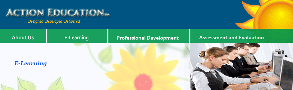 "Media products, such as a television program, a web site, or a learning object, are the result of creative human activity." (A.W. Bates and G. Poole; Effective Teaching with Technology in Higher Education) The number of organizations that are implementing various forms of e-learning is growing steadily. These companies want to provide timely, flexible, convenient and cost effective learning opportunities for their staff, members and clients. Please click on the tabs below to review Action Education's e-learning services. |